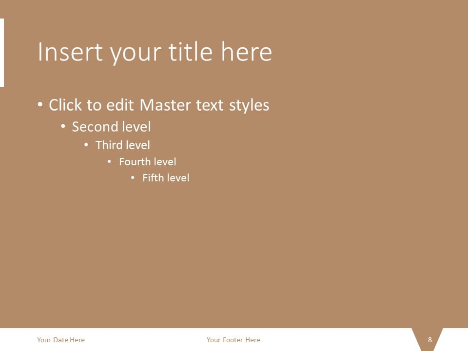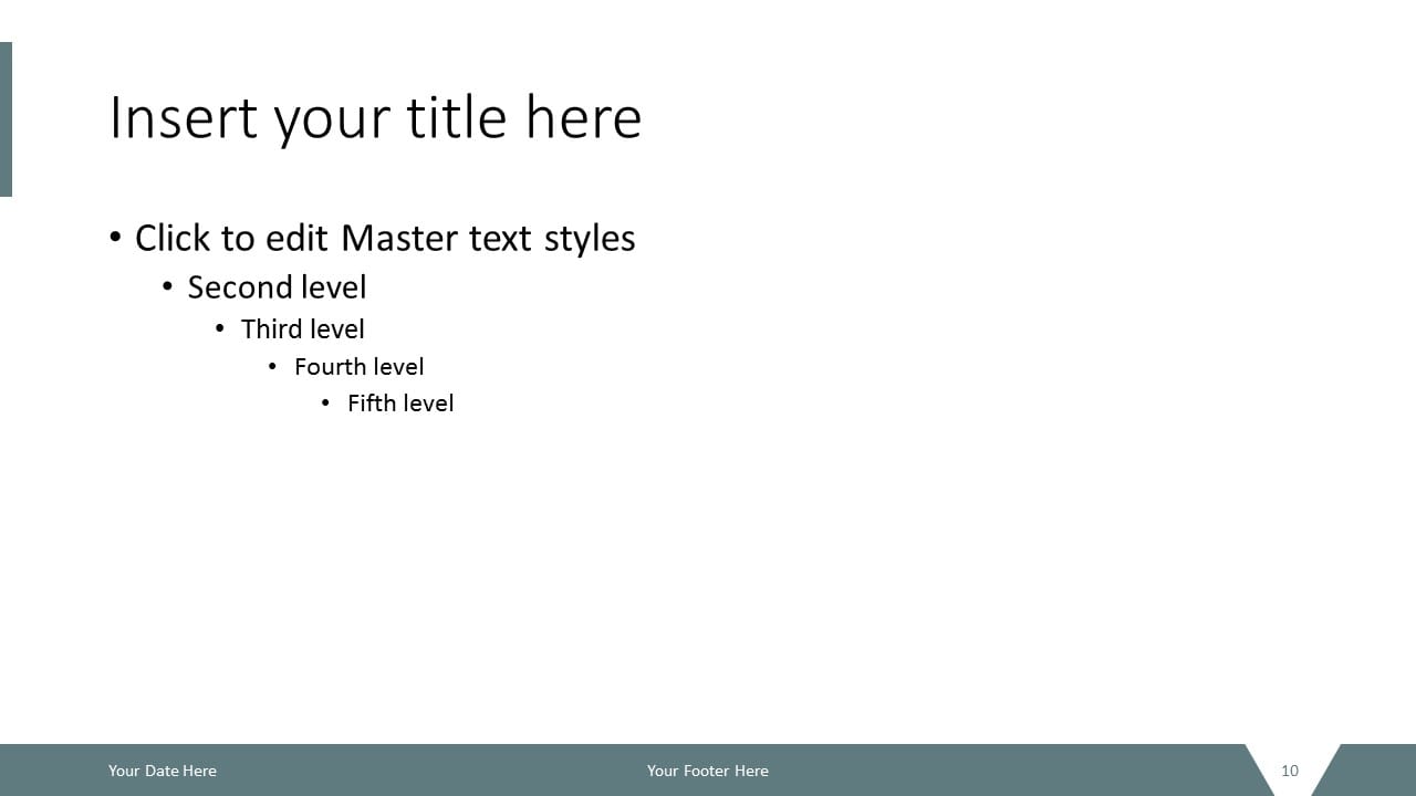 - Uses Master Slides : 3 color variants, with 1 title slide and 2 title + content slides for each