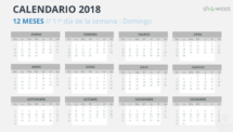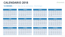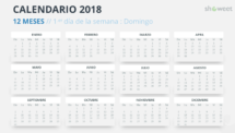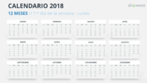 Ejemplo de diapositiva de calendario 2018 con 12 Meses