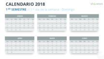 Ejemplo de diapositiva de calendario 2018 con 6 Meses (Semestres)