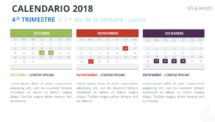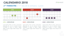 Ejemplo de diapositiva de calendario 2018 con 3 Meses (Trimestres)