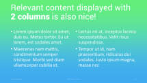 Se utiliza un patrón de diapositiva optimizado: el formato y los estilos (fuente tipográfica, tamaño de letra, marcadores de posición) de cada diapositiva que ya están listos, adaptados y así muy fáciles de usar o de modificar si lo necesita. Una combinación de colores personalizados ya está configurada dentro de esta plantilla.