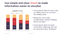 Ce modèle PowerPoint contient 22 diapositives préformatées, avec une sélection de diapositives prêtes à l’emploi – de basiques à plus spécifiques, comme par exemple : agenda, 4 options de diapositives de transition, avec image complète, citation, infographiques, charts, tableau, carte géographique et diapositive de fin de présentation.