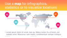 Ce modèle multifonction contient 25 diapositives pré-formatées, avec une sélection d’exemples prêts à l’emploi – de basiques à plus spécifiques, comme par exemple : agenda, 4 options de diapositives de transition, avec image complète, citation, infographiques, charts, tableau, carte géographique et diapositive de fin de présentation.