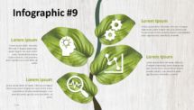 En outre, 14 modèles infographiques vous aideront à illustrer votre message avec clarté et impact. Ces graphiques sont désignés en cohérence avec le thème de la nature. Les éléments sont indépendants, vous pouvez donc adapter les infographies à vos besoins, ou bien même créer vos propres diagrammes… exprimez librement votre créativité !