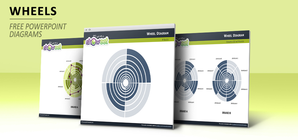 Diagrammes gratuits de type radar en forme de roue (aussi appelé diagramme de Kiviat, graphique toile d’araignée) pour PowerPoint.